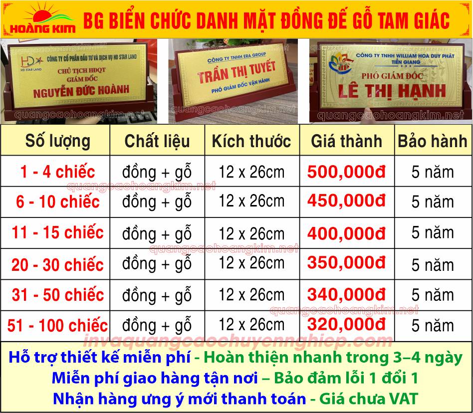 - Là biển chức danh mặt đồng đế gỗ hình tam giác để bàn.