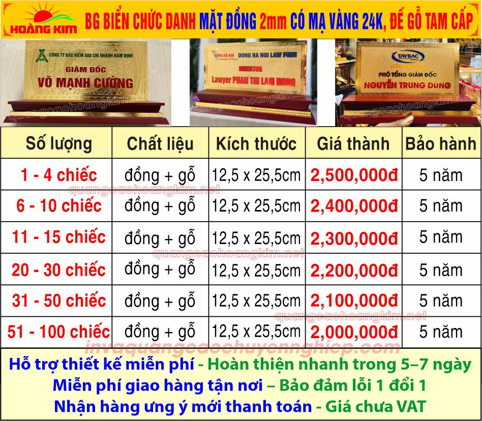 làm biển chức danh đồng mạ vàng chuyên nghiệp, biển chức danh bằng đồng mạ vàng 24k