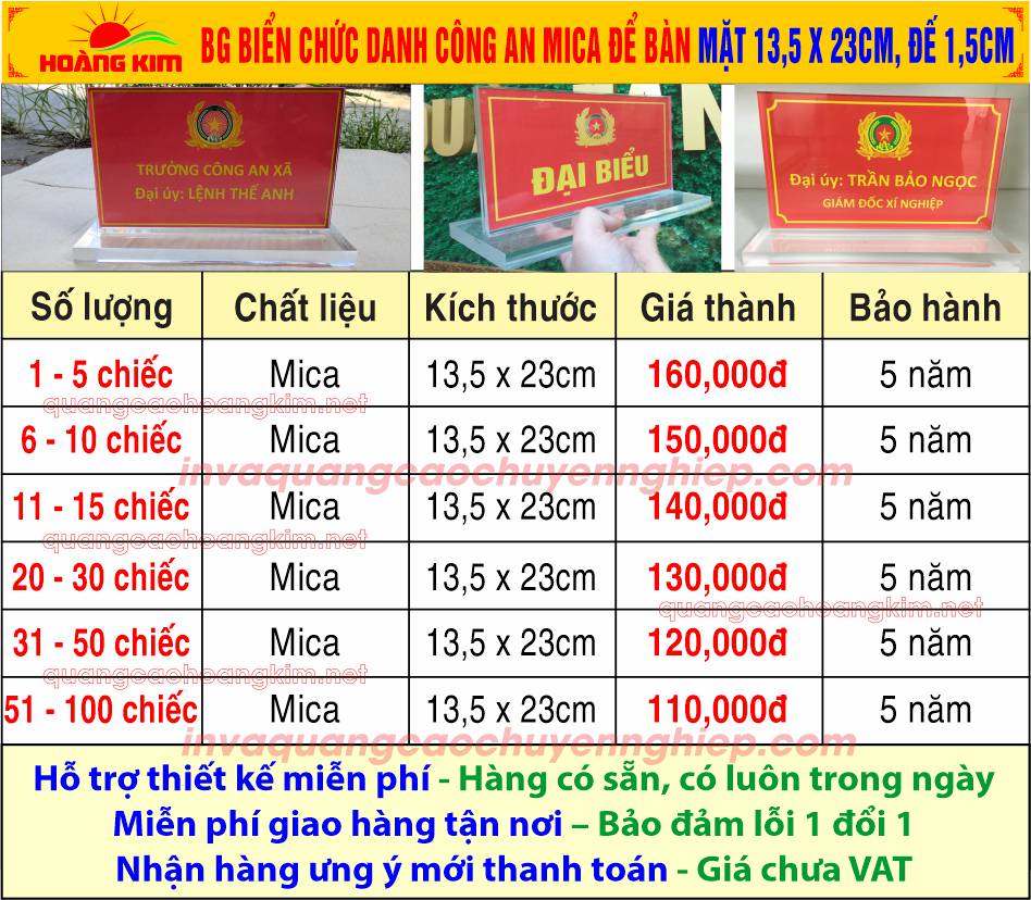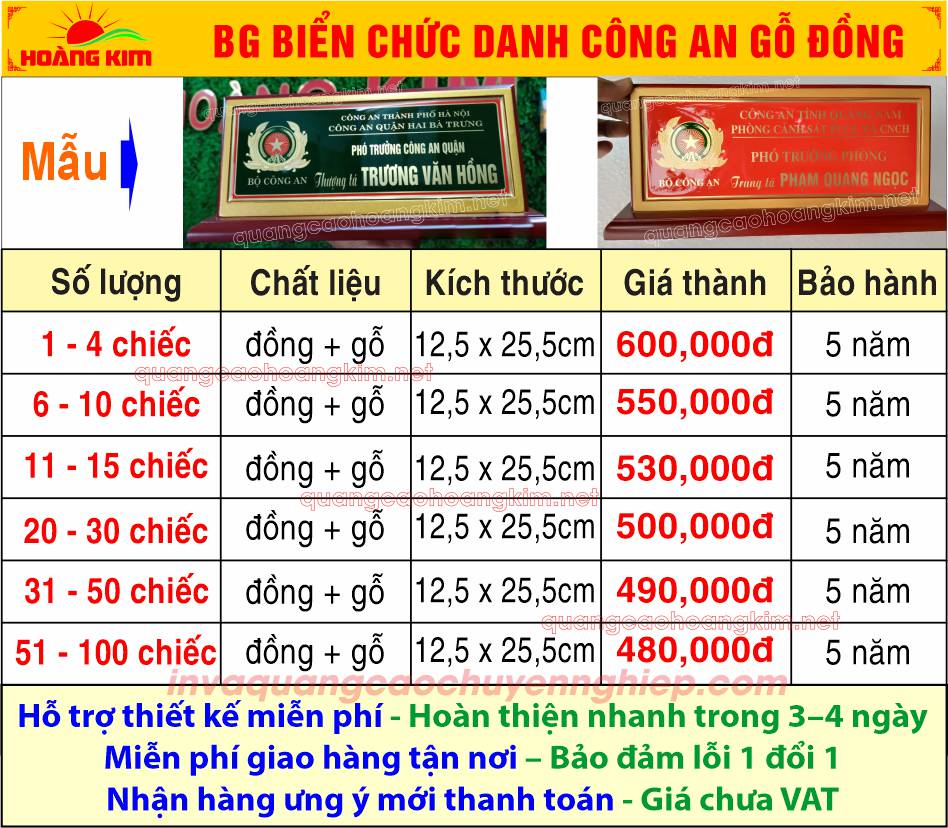 - Hoàng kim là đơn vị tiên phong và đi đầu trong lĩnh vực làm biển chức danh công an.